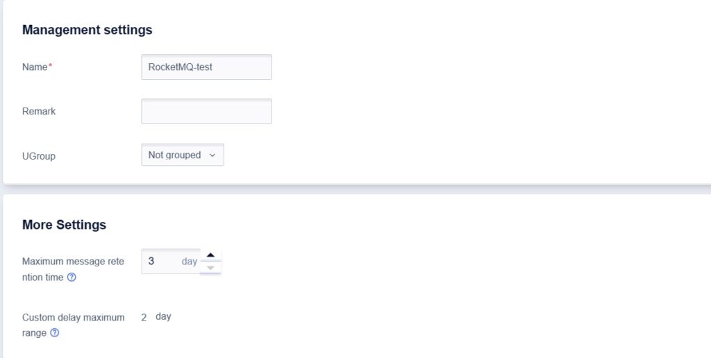 - 1.6. Enter the Name for the RocketMQ you want. You can choose to group it or not.