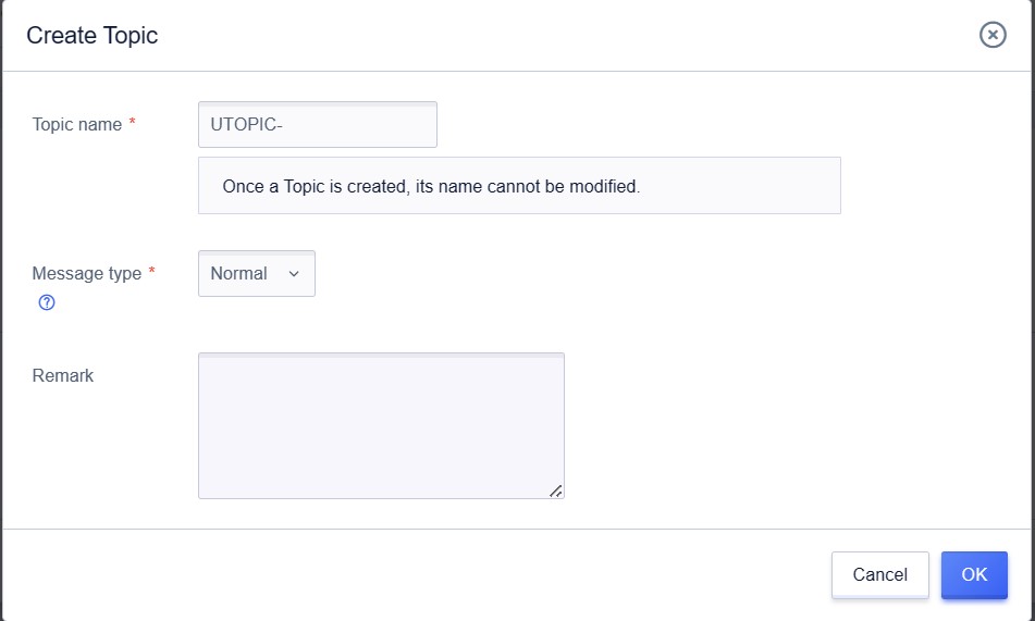 - 2.3. Enter a topic name (in our case, we will name it ‘TestTopic’, and use a normal message type).
