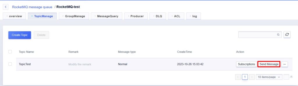 - 2.4. Your topic is now created as shown. You can test it by clicking ‘Send Message’.