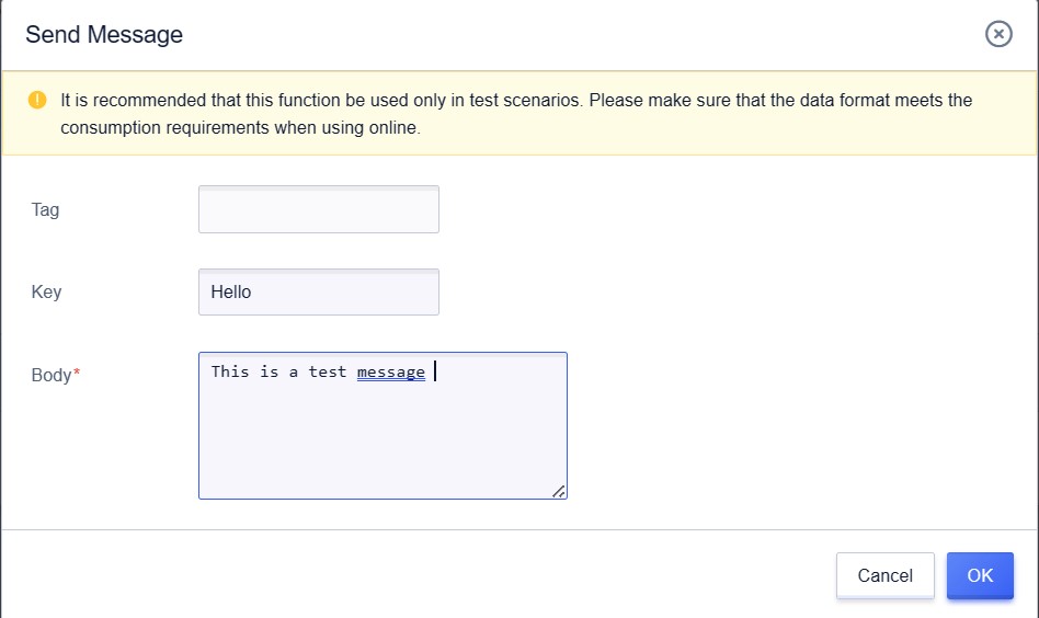 - 2.5. Enter message information as shown and click ‘OK’ once ready to send this message.
