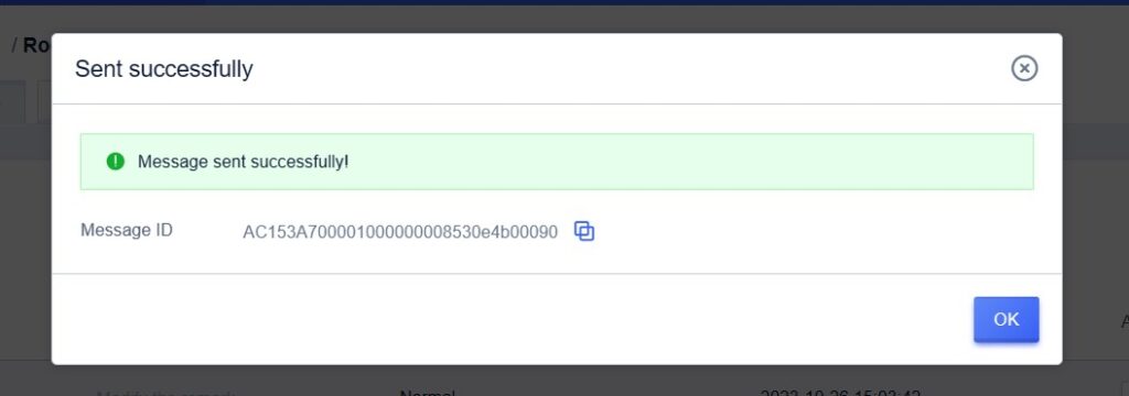 - 2.6. If the message is sent successfully, you will get a pop-up with the ‘Message ID’.