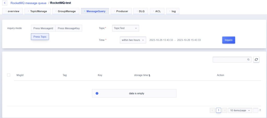 - 3.1. Go to the ‘MessageQuery’ tab and click ‘Press Topic’. Choose your topic from the drop-down menu and click ‘Inquire’.